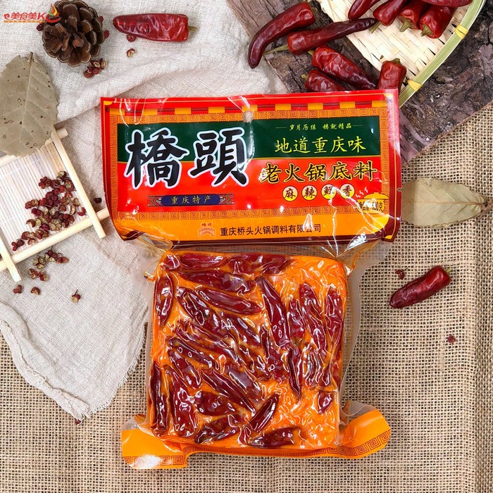 桥头火锅底料作为重庆本地老品牌,位于南坪珊瑚村。以经营各式川味火锅为特色,主要名品有各式火锅底料。火锅底料严格采用独特加工工艺,清鲜中求醇厚,麻辣中求柔和,口感中求层次”,形成了麻、辣、烫、嫩、鲜、香的鲜明特色。