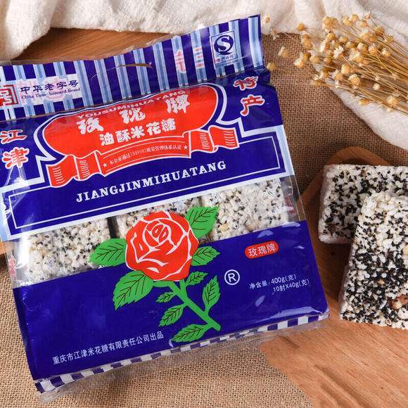 玫瑰牌是江津正宗老字号产品,拥有近100年历史,是全国最大的米花糖生产厂家。