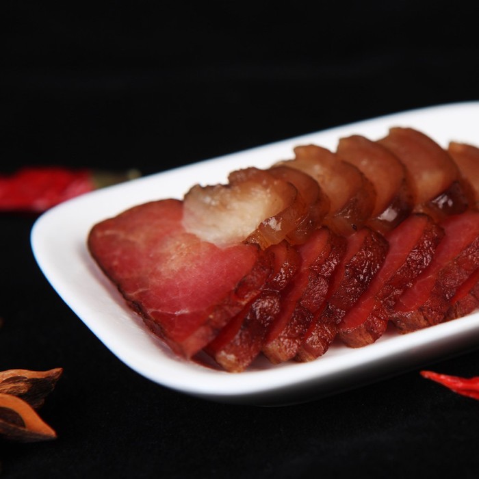 城口老腊肉产自重庆市城口县,具有500多年历史的民间加工秘方,经特殊的传统工艺精心熏制而成,其肉质精良、香味纯正、营养丰富,是城口具有代表性的土特产之一。