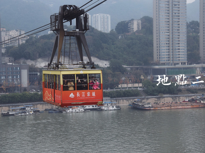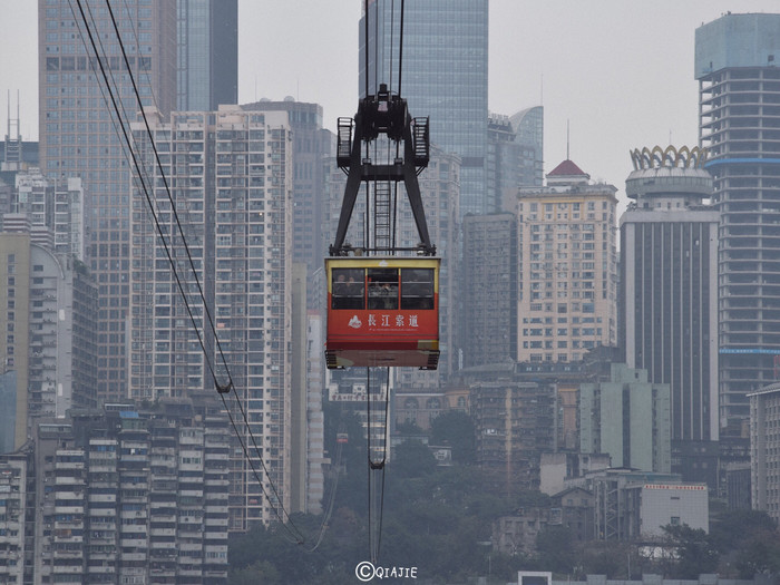 长江索道有两根,来往都有会车厢,想要拍到对面的车厢就请务必站在车厢里靠近另外一根索道的窗边。
