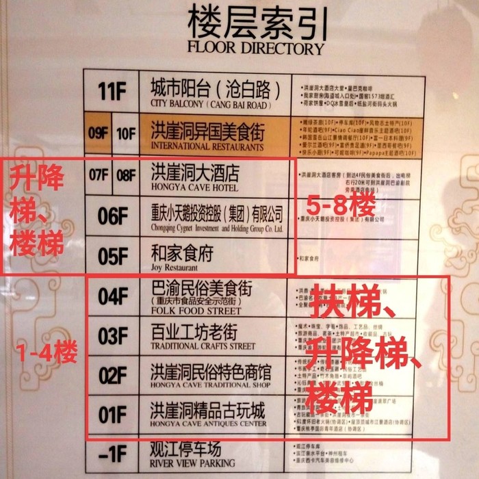 小贴士:1-4楼有扶梯、楼梯、升降梯,5-8楼没有扶梯,要坐电梯上楼还是建议从负一楼上去比较顺利。