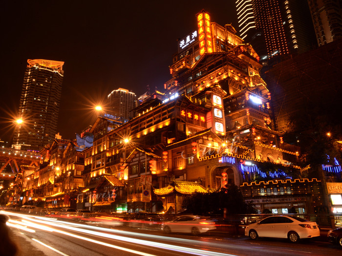 洪崖洞在大众眼里的印象是现实版的《千与千寻》,整个建筑群依山而建,错落有致,尤其是夜景,与《千与千寻》中的汤屋相似度90%。