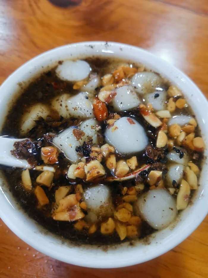 其实就是用猪油熬制的醪糟,然后煮好的汤圆里面加一勺进去。很香甜。浓郁的酒酿味,混合着猪油香,偶尔还夹杂着核桃花生的酥脆!真的很有特色,也只有重庆才有这个。可惜在洪崖洞里面商铺了,很多人都不知道这个。强烈推荐哦!
