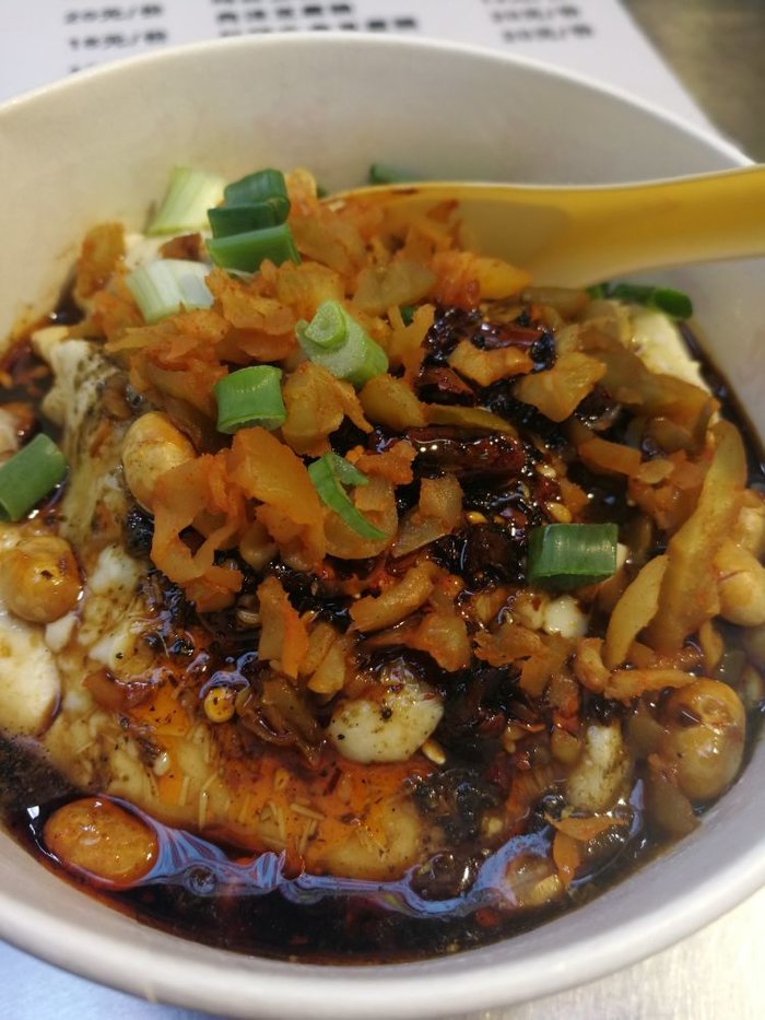 店主杂耍般地用个漏勺在抛粉也是很吸引眼球的。手工杂酸辣粉来一碗,另外要了份凉糕。地道的酸辣粉,汤和粉都是关键,这里的粉非常有Q劲,这应该是店主不断抛粉后让粉有了劲道,汤的味道也是不简单的,下料够足,酸酸辣辣吃口很舒服,上海绝对吃不到那么浓郁的酸辣粉;凉糕似乎是用大米做的,伴有糖浆,冰冰凉凉吃着倒也舒坦。