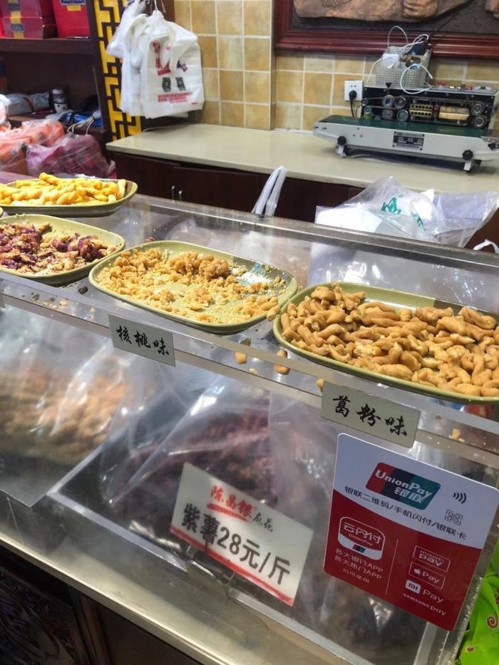陈昌银麻花据说是重庆最好的一个牌子,老字号来着,想着平时也喜欢吃的,就买点带回家做伴手礼,第一次知道麻花能有这么多的口味,还好这里都可以先尝后买的,选了两个自己觉得不错的口味,带回家送人了,大家都觉得蛮好吃的