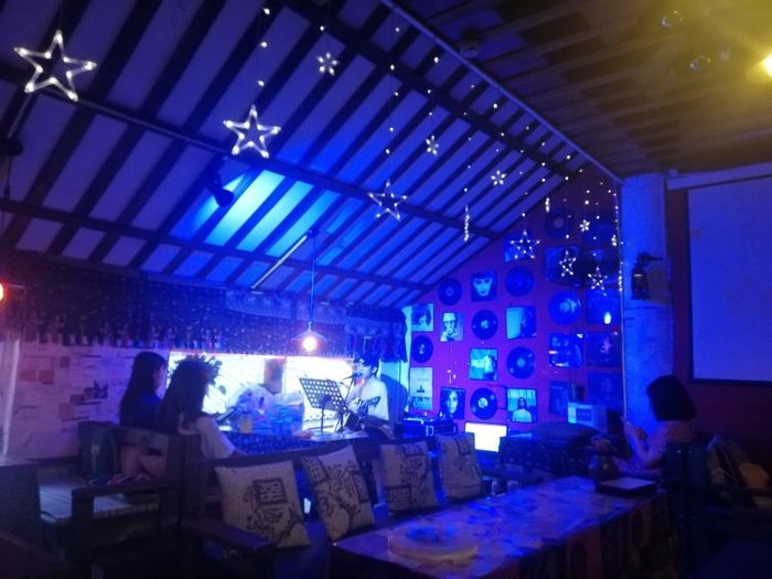 当天是因为耍累了,随便找了一个休息的地方,没想到这么休闲,舒适,就像回到了乡村的感觉,里面有驻场,声音也很好听,里面的装饰又有点乡村风格,点了一杯果汁,就可以静静休息好一会,还有一个大册子,可以翻看来过的人当时的心情记录,自己也可以续写