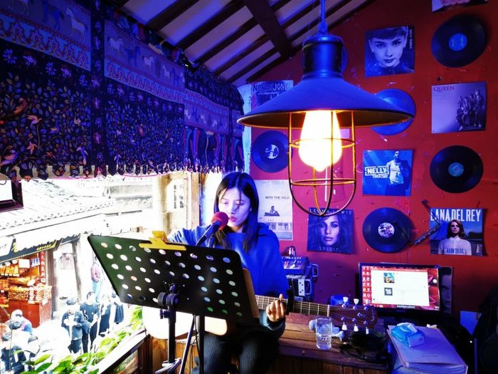 磁器口这里也有很多装修很有特点的酒吧,几乎每家店里都有驻唱歌手在唱民谣。如果在磁器口逛累了,那随便找一家酒吧坐下,听着民谣,喝杯小酒,小憩一下也是不错的体验。
