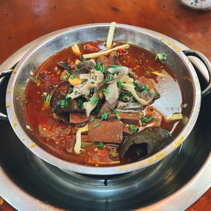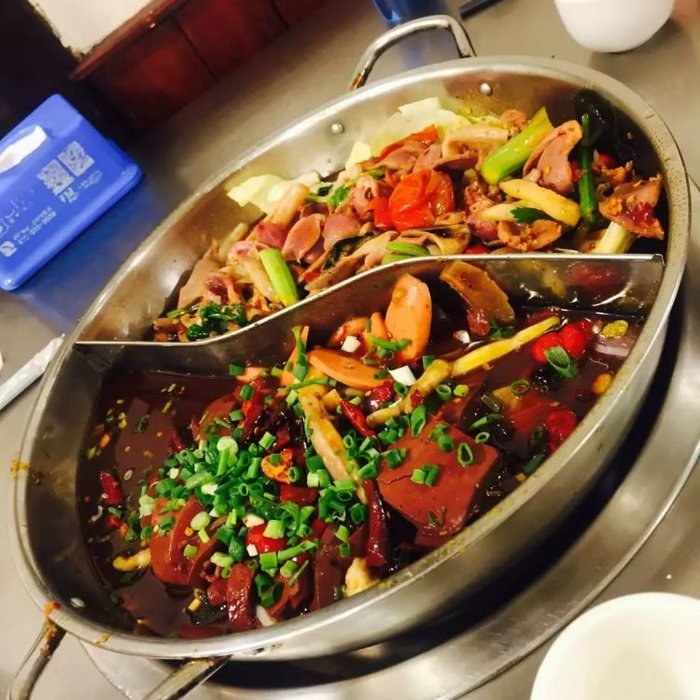 毛血旺是磁器口特色美食之一,由毛肚、鳝鱼、鸭血旺等一起煮制而成。在古镇里可以看到几乎每一个餐馆里都打着毛血旺的招牌,有"到磁器口不吃毛血旺,等于没到磁器口"的说法。