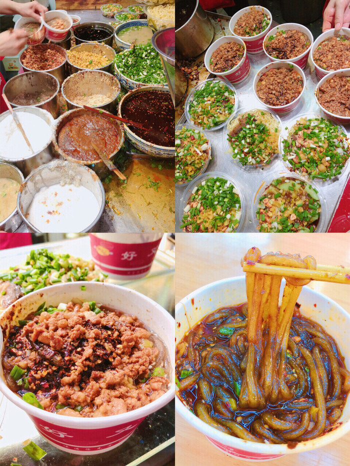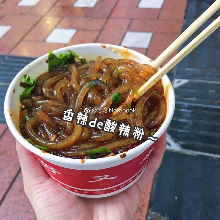 这家每天都很多人,9/1碗的招牌酸辣粉。酸辣粉上面撒满了杂酱 花生 香菜 红薯粉Q弹酸辣 酥烂的杂酱香脆的花生碎 汤汁鲜香浓郁海带豆芽打底 坐在路边分分钟嗦完一碗 来重庆的盆友一定要试试这家的酸辣粉
