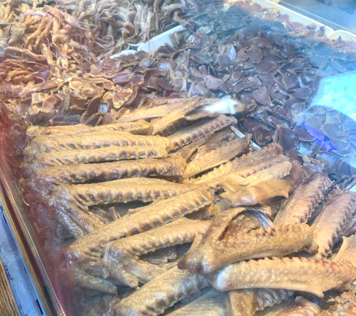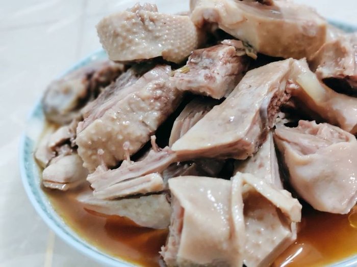 盐水和卤料很香,一丝微麻中又有五香的味道,虽然很厚一层油,但吃起来却不腻,反倒是清爽可口,老远就能闻到一股香味!另外鸭肉很紧实,是那种咬得烂又精得啃的程度~