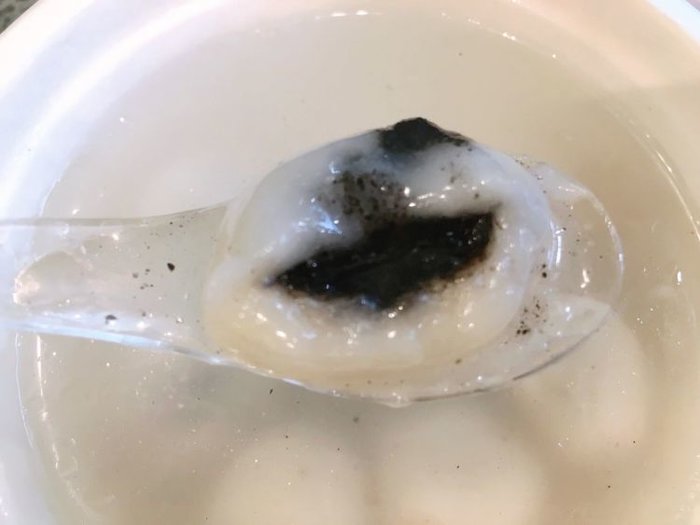 有点像宁波汤圆,小小的,芝麻馅柔滑,流沙…口齿留香,外皮软糯Q弹,煮的时间刚刚好。