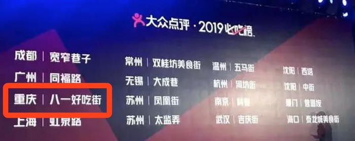 2019年7月5日,美团大众点评必吃榜在广州塔发布,全国评选出38条“必吃街”,重庆市渝中区的八一好吃街成为重庆地区唯一上榜的美食街。下图.