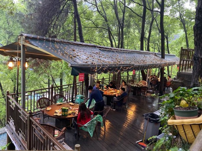 整座山都是火锅,环境太霸道了,去的时候刚下过雨,店里有准备雨衣铺凳子上。都是这样的露天火锅,一个服务员管一层,人多的时候有点忙不过来,但是态度非常好,也尽量满足客人。