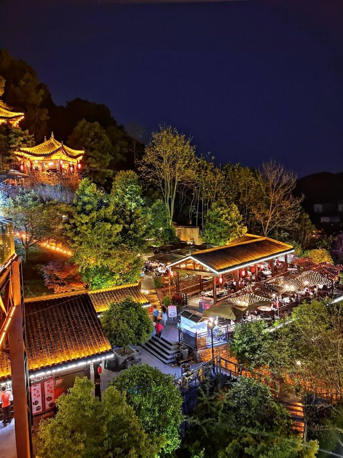 南山还是重庆火锅的“大本营”。在南山老厂,这里有一条拥有几十家各具特色的火锅店街道,有些火锅店承包了一整座山,有些火锅店像花园一般围绕着荷花池而建。