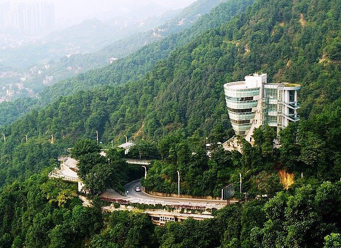 观景台由“前台后阁”组成,“前台”围绕黄桷树而建,由一个600平方米的主平台和两个500平方米辅助平台组成。“后阁”观景阁共有6层,同时满足室内与室外观景,与观景平台间由一个天桥连通。