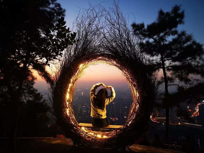 公园内设有“心屋剪影”、“摩登透明吊椅”、“森林巨型鸟窝”、“巴厘岛鸟巢”等网红夜景打卡点。