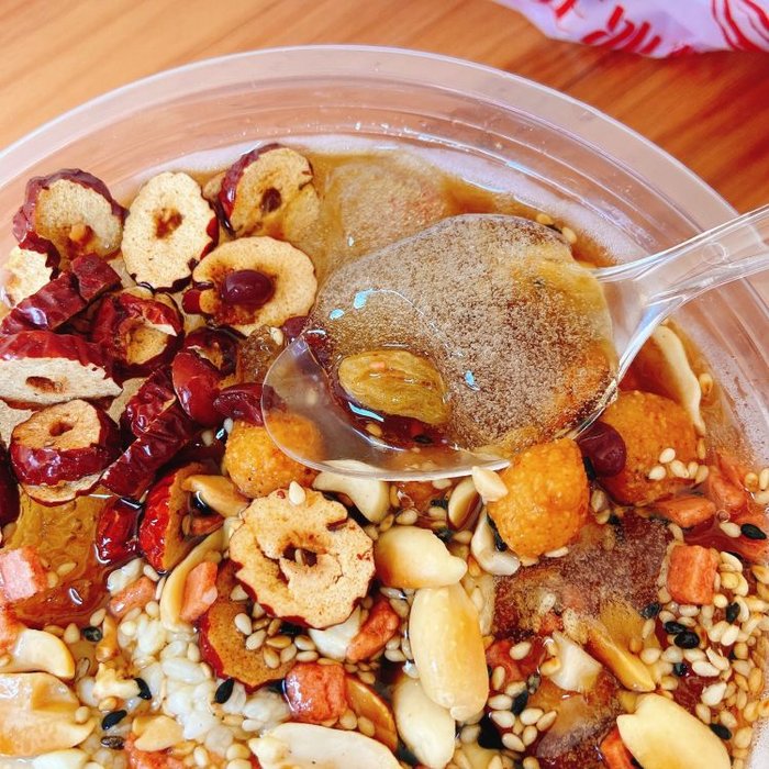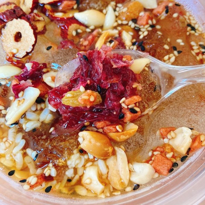 老板非常热情,介绍甜品很认真,动作也很快。打包的话辅料还会单独分装,避免泡太久影响口感,还会多给一包红糖水以方便调整甜度,非常贴心。