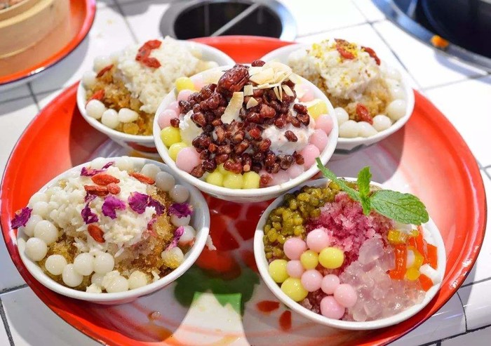 冰汤圆是这几年开始火起来的,一般是与火锅进行搭配,可以说是火锅店必点小吃。汤圆面捏成小指头大小的块,下锅煮熟,用大漏勺捞起来,装进碗里后立即加大量红糖冰沙,入口是温热的软糯酸甜,又是舒爽到骨髓里的冰凉。后来的冰汤圆又新增了不同的配料和冰沙口味,越来越丰富。