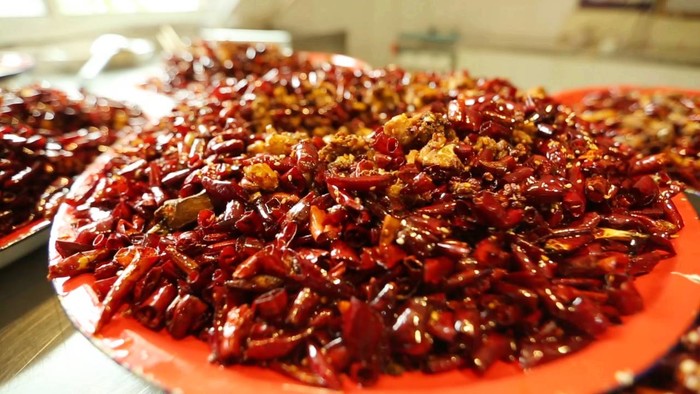 辣椒多于鸡肉,在满盘红亮的辣椒中轻挑慢选,寻找鸡丁是它的突出特征,回味悠长而使人津津乐道。辣子鸡是重庆菜中的大哥大,辣子鸡问世,带出一大批菜肴、形成的辣子系列菜,如:辣子田螺、辣子肥肠、辣子蹄花、辣子鱼丁、辣子竹虾。