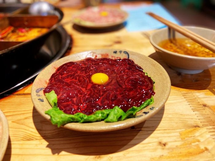 最推荐的素菜,鸭血特别嫩,入口即化!一定要冷锅下,然后锅一热就可以吃了。