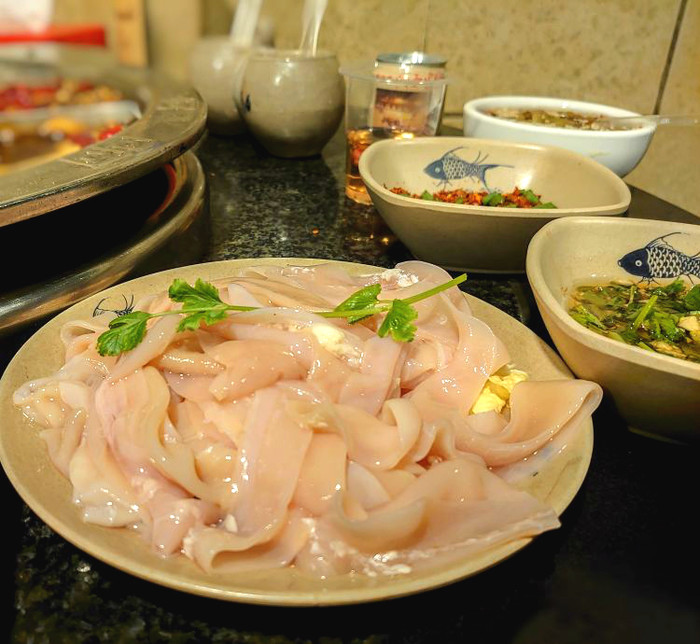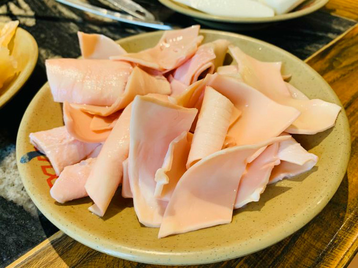 招牌菜之一,鹌鹑蛋与牛肝混合后涮到变色就可以吃了,鲜嫩入味口感偏糯,一定要搭配干油碟!吃起来没有异味。能接受肝脏类食材的朋友们一定要试试!