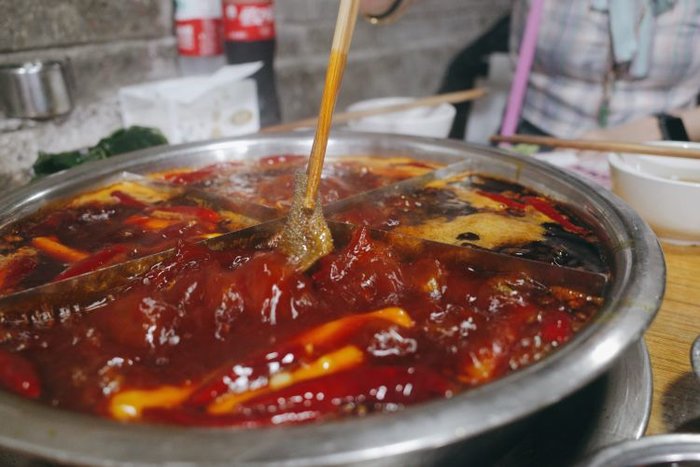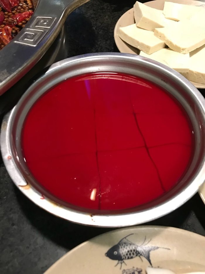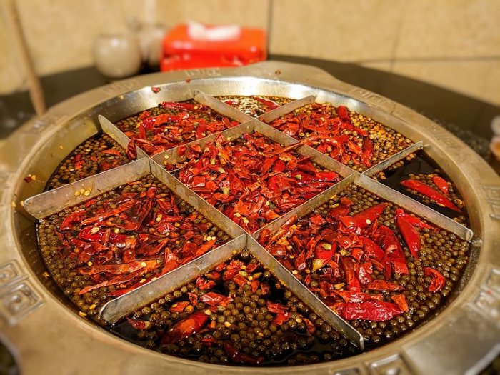 锅底铺满了花椒,麻辣味十足,但辣而不燥,而且越吃越入味。