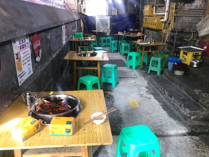 位于老旧的楼房下,外面仅用雨布围了一圈,比较简陋。破烂的环境属于这个店的缺点,但又是另一种特色,相比之下吃的是老重庆的情怀。