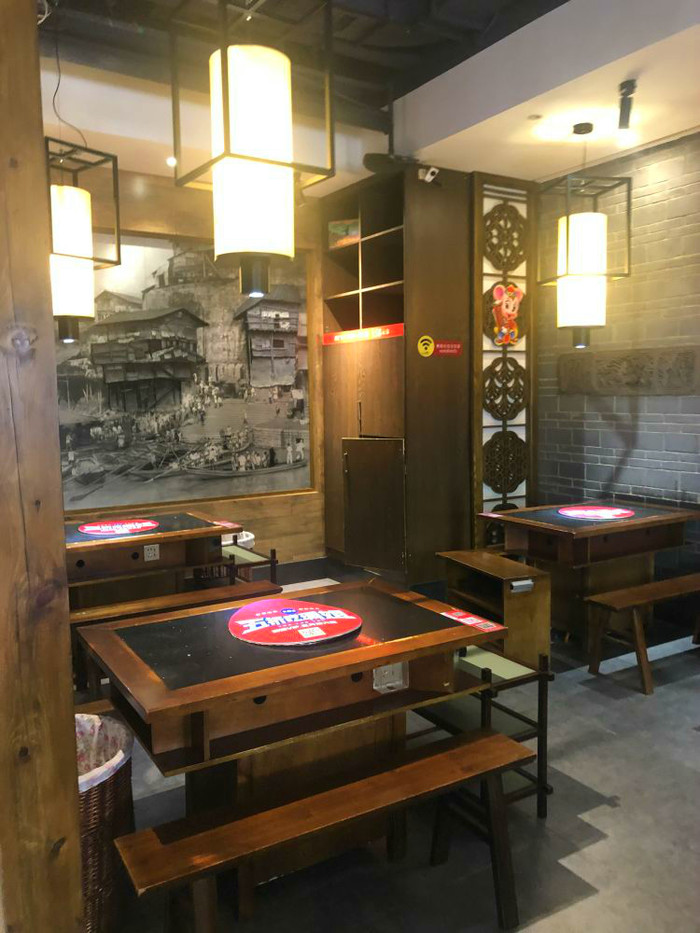 店面有两层楼,整体装修是复古市井风格,干净整洁。