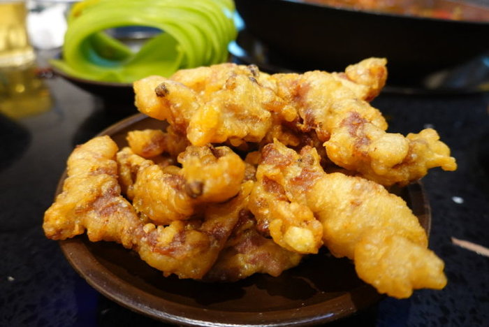 「酥肉」:外皮酥脆,内里的肉结实还有一点汁水,必点小吃之一。
