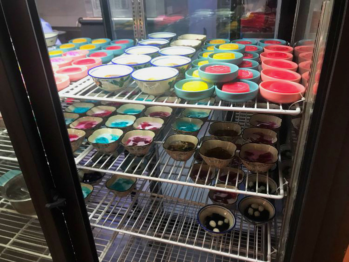 ②有各种甜品免费享用,有冰粉、杨枝甘露、布丁、双皮奶等等。