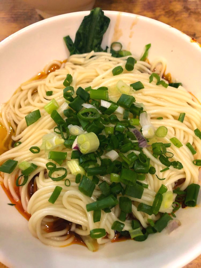 「摊摊面」:是店家的招牌面。摊摊面是干溜的,佐料非常丰富,芝麻酱香浓,油辣子辣度适中,再加上爽脆的榨菜粒和焦香的花生瓣,麻辣入味爽口,粘稠而回味。