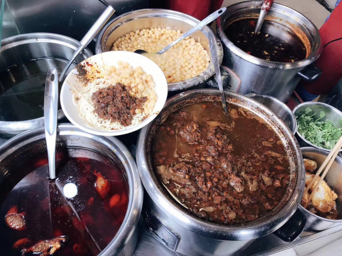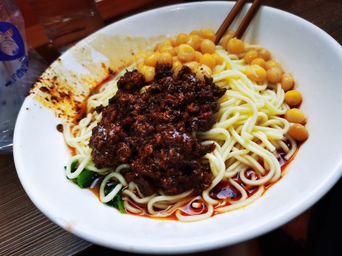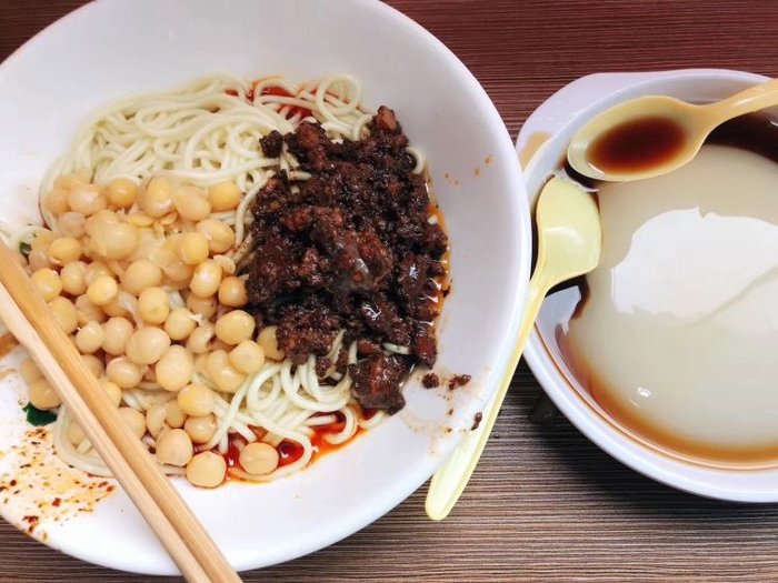 味道重油重辣,酱料十足,拌匀后每一口都是满满的香辣鲜麻,简单总结就是吃豌杂面一定要来这家!店里还有提供免费的紫菜汤。