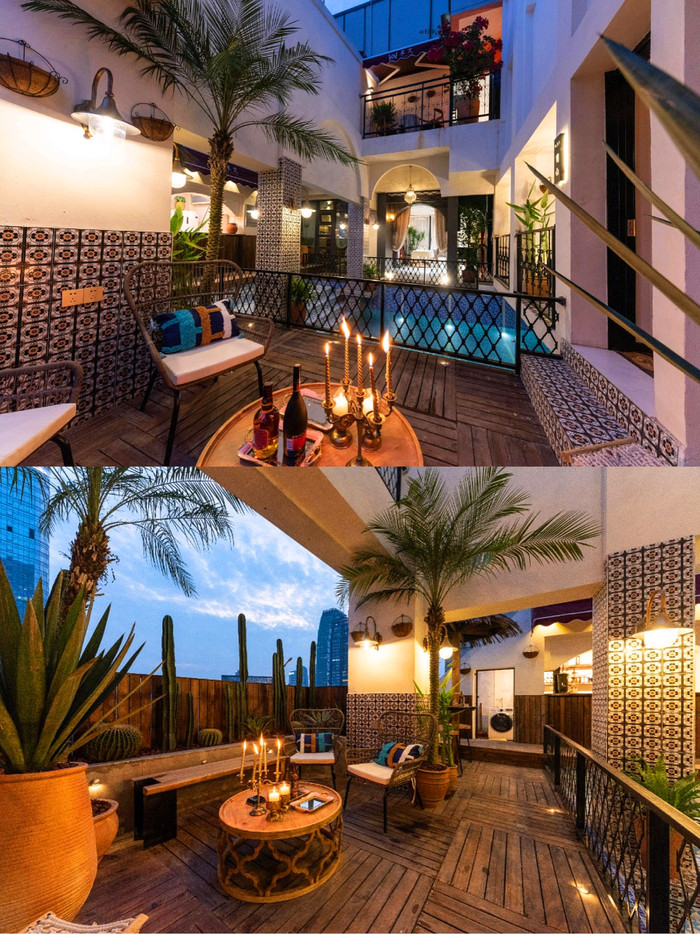 推荐理由:摩洛哥风格,带泳池的空中江景花园